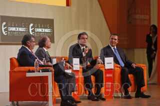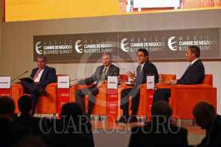 GUADALAJARA, JALISCO. 27OCTUBRE2015.- La perspectiva de los Gobernadores: Prioridades a nivel estatal para estimular el crecimiento y fortalecer la cohesión social, en donde participan, Juan Manuel Carreras López, Gobernador Constitucional del Estado de San Luis Potosí, Rafael Moreno Valle, Gobernador Constitucional del Estado de Puebla y Jorge Aristóteles Sandoval Díaz, Gobernador Constitucional del Estado de Jalisco, esto en el marco de la XIII Cumbre de Negocios que se lleva a cabo en la Expo Guadalajara. FOTO: FERNANDO CARRANZA GARCIA / CUARTOSCURO.COM