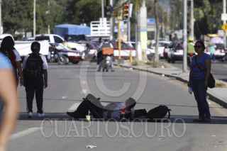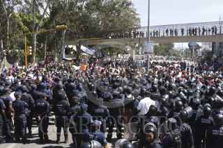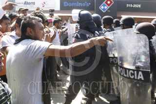 SANTA LUCÍA DEL CAMINO, OAXACA, 27SEPTIEMBRE2015.- Profesores de la sección 22 de la CNTE mantienen tomado el Instituto Estatal de Educación Pública de Oaxaca (IEEPO) y como parte de la protesta retuvieron 9 camiones del transporte urbano con los que bloquearon la carretera federal 190 Oaxaca- Istmo. Al lugar arribaron elementos de la Policía estatal quienes entre empujones y golpes liberaron los autobuses, sin embargo los mentores se negaron a retirar el bloqueo el cual se mantiene hasta el momento. FOTO: ARTURO PÉREZ ALFONSO /CUARTOSCURO.COM