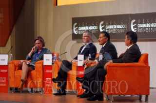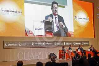 GUADALAJARA, JALISCO. 27OCTUBRE2015.- Después de las elecciones intermedias: ¿Cuál es el margen de acción de la actual administración? En la que participan, Ricardo Anaya, Presidente Nacional, Partido Acción Nacional (PAN), Arturo Zamora Jiménez, Partido Revolucionario Institucional (PRI), Carlos Navarrete, Presidente Nacional, Partido de la Revolución Democrática (PRD), esto en el marco de la XIII Cumbre de Negocios que se lleva a cabo en Expo Guadalajara. FOTO: FERNANDO CARRANZA GARCIA / CUARTOSCURO.COM
