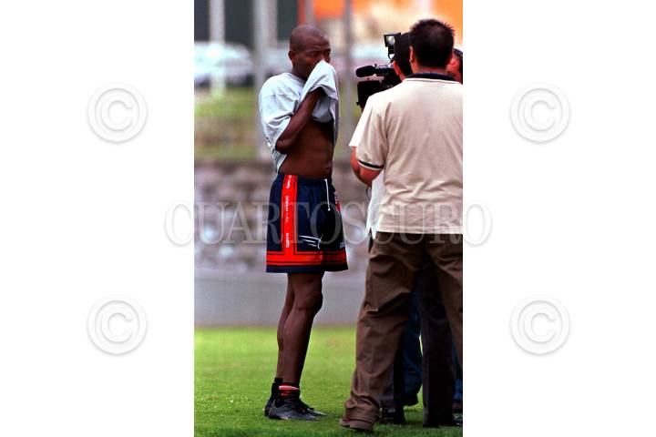 El colombiano Faustino Asprilla platica con los medios de comunicación sobre la sanción que le aplico Carlos Reynoso, director tecnico de los Potros del Atlante. FOTO: Pedro Mera/CUARTOSCURO.COM