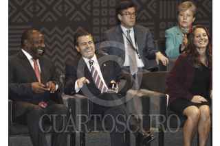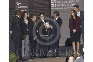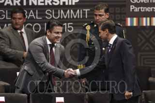 MÉXICO, D.F., 28OCTUBRE2015.- Aristóteles Sándoval, gobernador de Jalisco saluda a Enrique Peña Nieto, presidente d México, durante la inauguración de la Cumbre Global de Gobierno Abierto 2015, en el Palacio de Bellas Artes. FOTO: ISAAC ESQUIVEL /CUARTOSCURO.COM