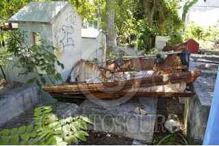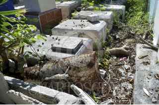 CANCÚN, QUINTANA ROO, 29OCTUBRE2015.- De las 4400 criptas en los panteones "Los Olivos" y "Los Alamos", 1480 se encuentran en pésimas condiciones, estos campo santo se encuentran en el olvido por parte de las autoridades y de familiares. Estas condiciones han generado una ola de robos y saqueos de tumbas; por ejemplo, en Los Alamos, el mas antiguo de la ciudad, enfrenta el problema serio del abandono, donde más de la mitad de las criptas esta deteriorada al ser blanco fácil de saqueo y hasta de actos de brujería y supercherías. Féretros en los andadores, criptas rotas, restos óseos expuestos a simple vista, chatarra y basura, se pudieron observar durante un recorrido. FOTO: ELIZABETH RUIZ /CUARTOSCURO.COM