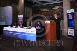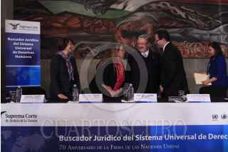 MÉXICO, D.F., 29OCTUBRE2015.- La senadora Angélica de la Peña; Isabel Crowley, representante en México de la Unicef; Luis María Aguilar Morales, presidente de la SCJN, y Jesús Peña Palacios, representante de la Oficina del Alto Comisionado de Naciones Unidas para los Derechos Humanos, durante la ceremonia en la cual se presentó la nueva versión del buscador jurídico del Sistema Universal de Derechos Humanos, en la sede de la Suprema Corte de Justicia de la Nación. FOTO: SCJN /CUARTOSCURO.COM