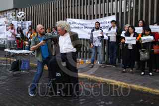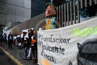 MÉXICO, D.F., 29OCTUBRE2015.- Decenas de personas de diferentes organizaciones sociales realizaron una protesta en las inmediaciones de uno de los edificios de Comisión Nacional de Seguridad perteneciente a la Secretaria de Gobernación, para exigir destituyan de su cargo a Arturo Escobar quien es hoy subdirector de participación ciudadana y prevención del delito en la SEGOB. FOTO: ISABEL MATEOS /CUARTOSCURO.COM