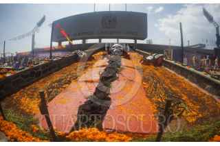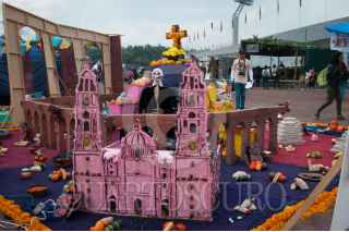 MÉXICO, D.F., 29OCTUBRE2015.- Fue abierto al público la tradicional mega ofrenda que organiza la UNAM, este año en el circuito del estadio olímpico universitario, la cual conmemora los 200 años de la muerte del héroe de la Independencia, José María Morelos y Pavón. Cada facultad y escuela invitada colocó una ofrenda, los altares permanecerán hasta el lunes 2 de noviembre. FOTO: DIEGO SIMÓN SÁNCHEZ /CUARTOSCURO.COM