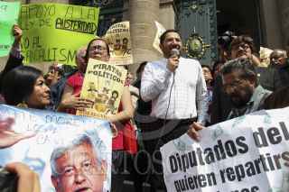 MÉXICO, D.F., 29OCTUBRE2015.- Martí Batres, dirigente de Morena, y simpatizantes del partido, protestaron afuera de la Asamblea Legislativa del Distrito Federal, para exigir que el presupuesto destinado a los partidos sea utilizado para el beneficio de los capitalinos. FOTO: MARÍA JOSÉ MARTÍNEZ /CUARTOSCURO.COM