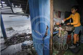 PLAYA PARAÍSO, COLIMA, 30OCTUBRE2015.- Comerciantes de los pequeños restaurantes que se encuentran en el malecón de Playa Paraíso señalan los daños que sufrieron sus comercios, y el complicado panorama para poder levarse, esto tras las afectaciones que ocasionó el huracán Patricia. FOTO: ANDRÉS YAÑEZ /CUARTOSCURO.COM