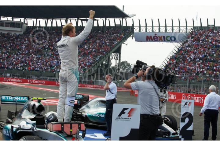 MÉXICO, D.F., 01NOVIEMBRE2015.- El último día de actividades finalizó con la carrera del Grand Prix, en donde corrieron los pilotos que clasificaron a la ronda final. Los tres primeros lugares fueron Nico Rosberg, y Lewis Hamilton, ambos de escudería Mercedes AMG Petronas, y Valtteri Bottas, de escudería Williams Racing, quienes fueron premiados en el pódium ante los espectadores del Autódromo Hermanos Rodríguez. FOTO: MARÍA JOSÉ MARTÍNEZ /CUARTOSCURO.COM