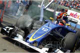 MÉXICO, D.F., 01NOVIEMBRE2015.- El último día de actividades finalizó con la carrera del Grand Prix, en donde corrieron los pilotos que clasificaron a la ronda final. Los tres primeros lugares fueron Nico Rosberg, y Lewis Hamilton, ambos de escudería Mercedes AMG Petronas, y Valtteri Bottas, de escudería Williams Racing, quienes fueron premiados en el pódium ante los espectadores del Autódromo Hermanos Rodríguez. En la imagen, el piloto Felipe Nasr, de la escudería Sauber F1. FOTO: MARÍA JOSÉ MARTÍNEZ /CUARTOSCURO.COM