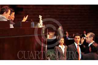 Martí Batres y Alejandra Barrales durante la sesion en la Cámara de Diputados. FOTO: Christian Palma/CUARTOSCURO.COM