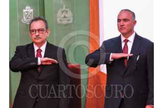 COLIMA, COLIMA, 01NOVIEMBRE2015.- Ramón Pérez Díaz rindió protesta como gobernador interino de Colima este domingo, en una sesión solemne del Congreso del Estado. Ante el secretario de Sagarpa, José Calzada Rovirosa. FOTO: ENRIQUE MURGUIA /CUARTOSCURO.COM