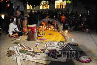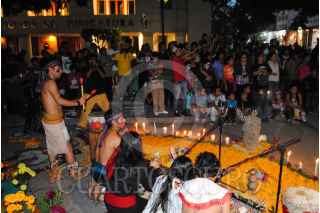 CHILPANCINGO, GUERERRO 01NOVIMEBRE2015.- Nahuales de Ixtlitezcatl realizaron el "Huei Miquiztli" Gran fiesta de los Muertos; que consiste en un rito prehispánico, con canto, ofrenda floral, danza y el recorrido de la muerte. FOTO: JOSÉ I. HERNÁNDEZ /CUARTOSCURO.COM