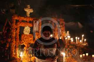 TZINTZUNTZAN, MICHOACÁN, 02NOVIEMBRE2015.- Celebración tradicional de la Noche de Muertos en el pueblo magico de Tzintzuntzan. FOTO: ALAN ORTEGA /CUARTOSCURO.COM
