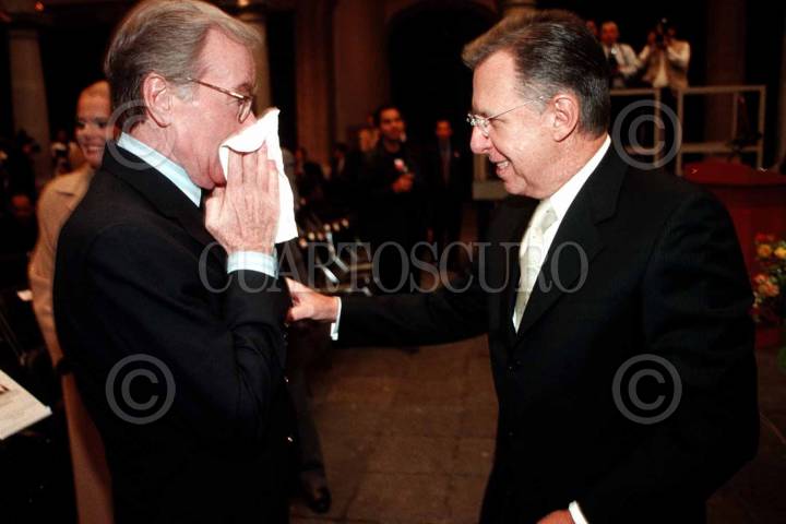 Jacobo Zabludovsky y Joaquin López Dóriga, durante la Jornada de la Fraternidad Ciudadana. FOTO: Pedro Mera/CUARTOSCURO.COM