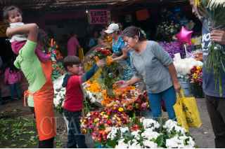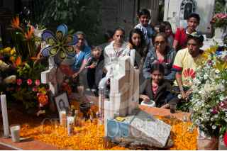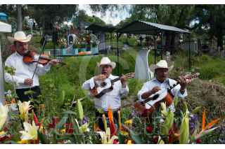 MEXICO, D.F., 02NOVIEMBRE2015.- Cientos de personas visitan el Panteón Civil de Iztapalapa, ubicado en las faldas del cerro de la Estrella, para conmemorar el día de muertos, visitando a sus seres queridos, ataviando sus tumbas de flores y limpiando las criptas. Algunas familias acuden para comer y contratar algunos músicos que deambulan por los pasillos, para recordar y sentir la presencia de los seres que ya se fueron. FOTO: DIEGO SIMÓN SÁNCHEZ /CUARTOSCURO.COM