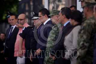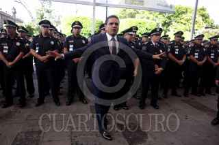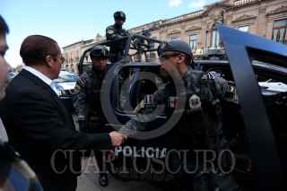MORELIA, MICHOACÁN, 02NOVIEMBRE2015.- El Gobernador Silvano Aureoles Conejo, acompañado de Enrique Francisco Galindo, Comisario de la Policía Federal, encabezaron el arranque de actividades de los 300 elementos que reforzarán la seguridad de la capital del estado. FOTO: ALAN ORTEGA /CUARTOSCURO.COM