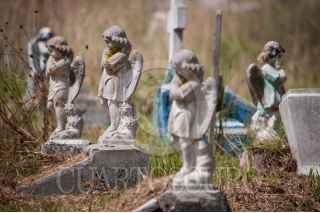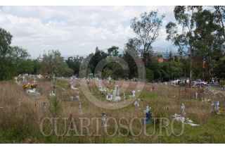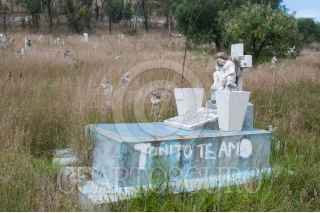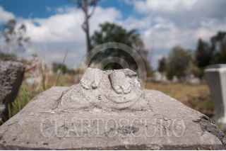 MEXICO, D.F., 02NOVIEMBRE2015.- La zona donde se entierran a los niños en el Panteón Civil de Iztapalapa se encuentra en total abandono, el lugar se encuentra a las orillas del camposanto por lo que mucha gente no visita esa parte, que luce con mucha yerba cubriendo las criptas, en su mayoría con figuras de angelitos, muchos de ellos rotos y tirados por el campo, erosionados por el clima y el tiempo, ya que algunos están ahí desde los años sesenta del siglo pasado. FOTO: DIEGO SIMÓN SÁNCHEZ /CUARTOSCURO.COM