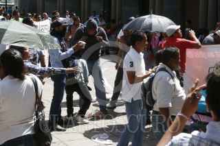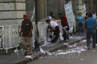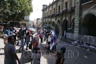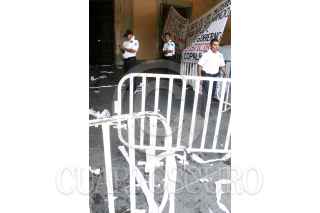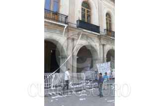 OAXACA, OAXACA, 02NOVIEMBRE2015.- Para demandar la liberación de los profesores, Othón Nazariega, Efraín Picasso, Roberto Abel Jiménez y Juan Carlos Orozco detenidos el pasado jueves y trasladados al penal del Altiplano, un grupo de encapuchados arrojaron huevos y rollos de papel higiénico en contra del palacio de gobierno para recriminar al gobernador, Gabino Cué lo que consideran su rendición ante el gobierno de Enrique Peña Nieto.. FOTO: ARTURO PÉREZ ALFONSO /CUARTOSCURO.COM