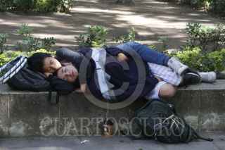 OAXACA, OAXACA, 02NOVIEMBRE2015.- Una pareja de artistas urbanos toman una siesta en el zócalo de la ciudad de Oaxaca. FOTO: ARTURO PÉREZ ALFONSO /CUARTOSCURO.COM