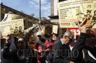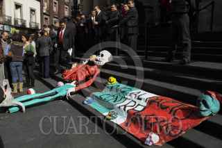 MÉXICO, D.F., 03NOVIEMBRE2015.- Simpatizantes, militantes y diputados del partido MORENA, acompañaron a Martí Batres y Bertha Lujan en una protesta en las escalinatas de la Asamblea Legislativa del Distrito Federal para denunciar el poco esclarecimiento con el presupuesto asignado a la ALDF. FOTO: ISABEL MATEOS /CUARTOSCURO.COM