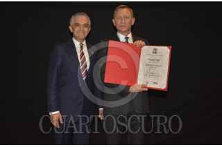 MÉXICO, D.F., 03NOVIEMBRE2015.- El Jefe de Gobierno, Miguel Ángel Mancera Espinosa, sostuvo una reunión con el actor británico Daniel Craig, protagonista de la nueva película del Agente 007 Spectre, a quien entregó el pergamino como Visitante Distinguido de la Ciudad. FOTO: GDF /CUARTOSCURO.COM