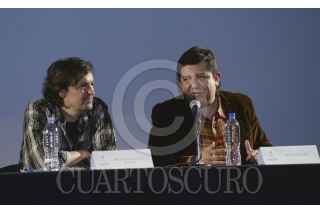 MÉXICO, D.F., 04NOVIEMBRE2015.- Miguel Ángel Monges y Julio Aguilar, ex colaboradores del suplemento Sábado del periódico Unomásuno, durante un homenaje que se le brindo al periodista, catedrático y escritor Huberto Batis fue reconocido en el Palacio de Bellas Artes como uno de los protagonistas de la literatura mexicana. El director de reconocidos suplementos culturales no pudo asistir a la cita en la sala Manuel M. Ponce por indicaciones médicas. Sin embargo, envió un mensaje en forma de video, que fue proyectado ante el público, donde se encontraban amigos, colegas, alumnos y familiares. FOTO: CONACULTA /CUARTOSCURO.COM