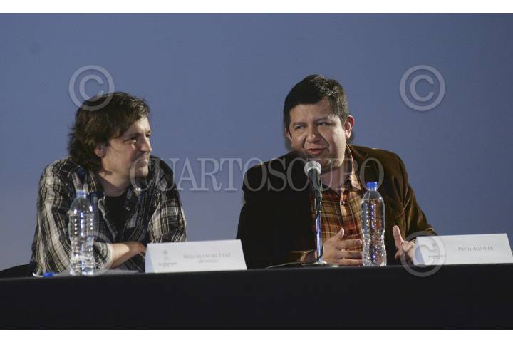 MÉXICO, D.F., 04NOVIEMBRE2015.- Miguel Ángel Monges y Julio Aguilar, ex colaboradores del suplemento Sábado del periódico Unomásuno, durante un homenaje que se le brindo al periodista, catedrático y escritor Huberto Batis fue reconocido en el Palacio de Bellas Artes como uno de los protagonistas de la literatura mexicana. El director de reconocidos suplementos culturales no pudo asistir a la cita en la sala Manuel M. Ponce por indicaciones médicas. Sin embargo, envió un mensaje en forma de video, que fue proyectado ante el público, donde se encontraban amigos, colegas, alumnos y familiares. FOTO: CONACULTA /CUARTOSCURO.COM
