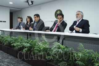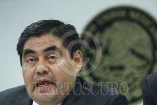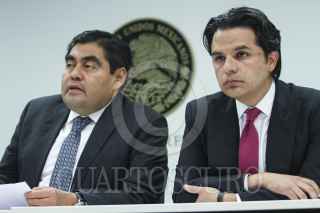 MÉXICO, D.F., 04NOVIEMBRE2015.- El grupo parlamentario del PRD puntualizó que por la situación actual del país no esta de acuerdo con el nombramiento del empresario Alberto Bailleres dueño de Grupo Bal que incluye las tiendas departamentales más grandes en México, sea el galardonado con la medalla Belisario Domínguez. Miguel Angel Barbosa y Zoe Robledo durante la conferencia de prensa. FOTO: ISABEL MATEOS /CUARTOSCURO.COM