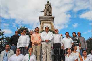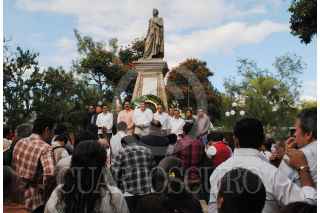 TIXTLA, GUERRERO, 04NOVIEMBRE2015.- Esta mañana el candidato priísta Saúl Nava Astudillo, arrancó su campaña colocando una ofrenda en los monumentos del general Vicente Ramón Guerrero Saldaña y el escritor Ignacio Manuel Altamirano. Saúl Nava Astudillo fue acompañado por el ex presidente de Chilpancingo Mario Moreno Arcos, del diputado local Cuauhtémoc Salgado Romero, del dirigente del Comité Estatal del tricolor, José Parcero López, entre otros personajes del PRI. Inició su campaña bajo el lema "Por la Grandeza de Tixtla Vamos Juntos. FOTO: JOSÉ I. HERNÁNDEZ /CUARTOSCURO.COM