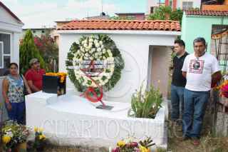 CHILPANCINGO, GUERRERO, 04NOVIEMBRE2015.-Bertoldo Martínez, dirigente del Frente de Organizaciones Democrática del Estado de Guerrero (FODEG) recordó al comandante Omar Guerrero Solís “Comandante Ramiro” en su aniversario luctuoso. En el panteón de la ciudad depositó una ofrenda floral en la tumba del comandante. FOTO: JOSÉ I.HERNÁNDEZ /CUARTOSCURO.COM