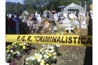TENANCINGO, ESTADO DE MÉXICO, 04NOVIEMBRE2015.- En el panteón de la comunidad de Tecomatlan, arribaron peritos argentinos para realizar la exhumación a petición de la familia de Julio Cesar Mondragon Fontes, para poder esclarecer los hechos de la muerte del normalista de Ayotzinapa. Personal de Proteccion Civil, Policías Estatales y Agentes de la PGR resguardaron las inmediaciones del lugar, mientras laboraban los peritos argentinos. FOTO: DIEGO REYES /CUARTOSCURO.COM