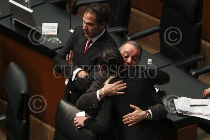 MÉXICO, D.F., 05NOVIEMBRE2015.- Raúl Cervantes senador de la bancada priísta y Ana Guevara senadora del Partido del Trabajo, durante la sesión en la Asamblea Legislativa. FOTO: ISABEL MATEOS /CUARTOSCURO.COM