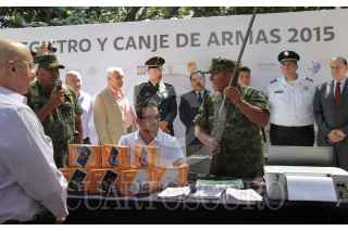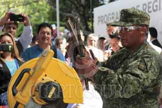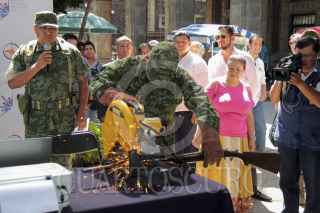 CUERNAVACA, MORELOS, 05NOVIEMBRE2015.- El secretario de gobierno Matías Quiroz y el presidente municipal de Cuernavaca, Jorge Morales Barud, así como autoridades federales y estatales llevaron a cabo la ceremonia de inauguración del Registro y canje de armas 2015 que se realizó en Plaza de Armas Emiliano Zapata Salazar. FOTO: PATRICIA MORALES /CUARTOSCURO.COM