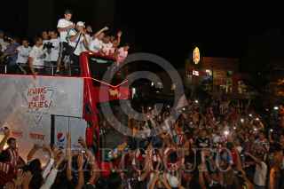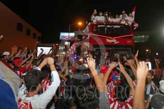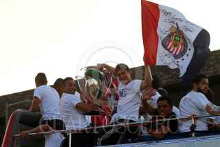 GUADALAJARA, JALISCO.- 05NOVIEMBRE2015.-El equipo de las Chivas de Guadalajara celebro esta tarde el campeonato de la Copa MX, con una caravana que partió del estadio Omnilife hacia la minerva, por algunas de las vías mas importantes de la ciudad, durante el recorrido que duro aproximadamente un par de horas, los jugadores fueron interactuando con la afición FOTO: FERNANDO CARRANZA GARCIA/ CUARTOSCURO.COM