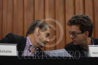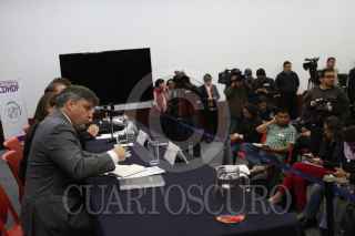 MÉXICO, D.F., 06NOVIEMBRE2015.- Miembros del Grupo Interdisciplinario de Expertos Independientes (GIEI) presentaron la propuesta de trabajo con respecto al Informe Ayotzinapa, en el que mencionaron que no será necesario hacer un tercer peritaje en el basurero de Cocula. La presentación se llevó a cabo en las instalaciones de la Comisión de Derechos Humanos del Distrito Federal. En la imagen, Francisco Cox, Ángela Buitrago, Carlos Beristain, Alejandro Valencia. FOTO: MARÍA JOSÉ MARTÍNEZ /CUARTOSCURO .COM