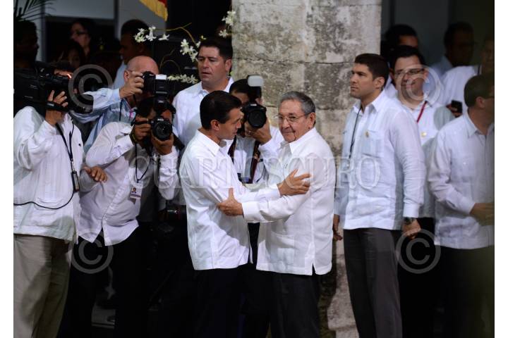 MÉRIDA, YUCATÁN, 06NOVIEMBRE2015.- Raúl Castro, presidente de Cuba y Enrique Peña Nieto, presidente de México durante la ceremonia oficial durante la visita de Estado del presidente caribeño. FOTO: ADOLFO VLADIMIR /CUARTOSCURO.COM