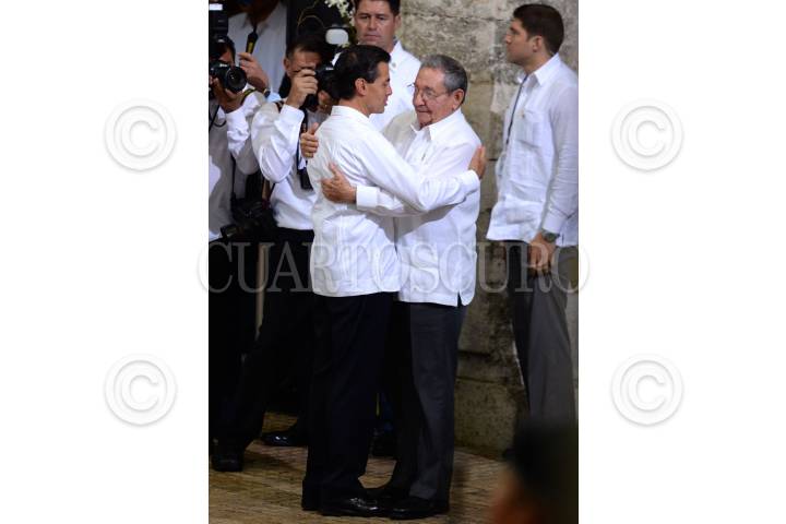 MÉRIDA, YUCATÁN, 06NOVIEMBRE2015.- Raúl Castro, presidente de Cuba y Enrique Peña Nieto, presidente de México durante la ceremonia oficial durante la visita de Estado del presidente caribeño. FOTO: ADOLFO VLADIMIR /CUARTOSCURO.COM