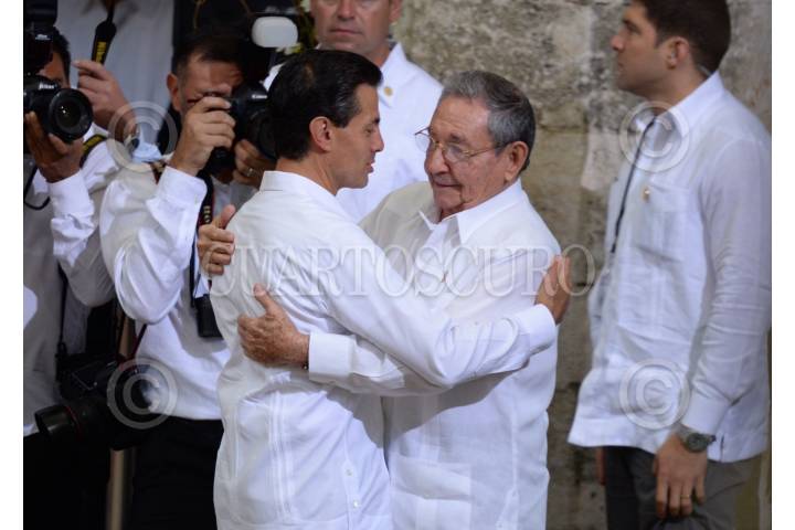 MÉRIDA, YUCATÁN, 06NOVIEMBRE2015.- Raúl Castro, presidente de Cuba y Enrique Peña Nieto, presidente de México durante la ceremonia oficial durante la visita de Estado del presidente caribeño. FOTO: ADOLFO VLADIMIR /CUARTOSCURO.COM