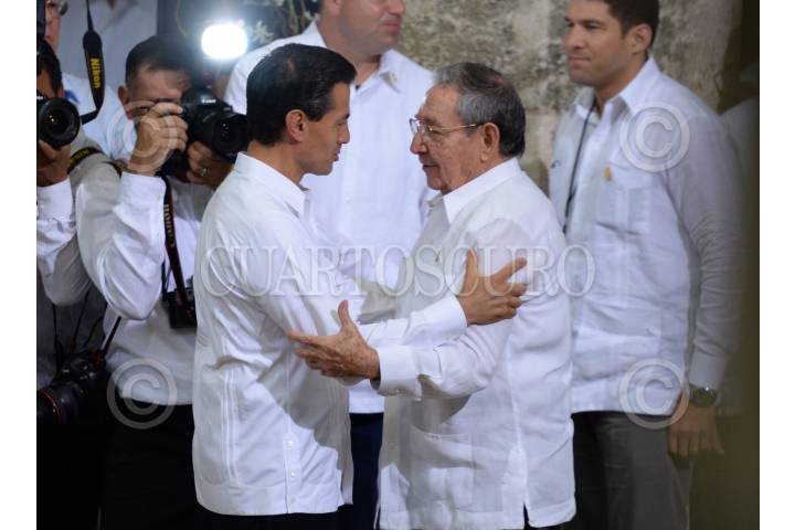MÉRIDA, YUCATÁN, 06NOVIEMBRE2015.- Raúl Castro, presidente de Cuba y Enrique Peña Nieto, presidente de México durante la ceremonia oficial durante la visita de Estado del presidente caribeño. FOTO: ADOLFO VLADIMIR /CUARTOSCURO.COM