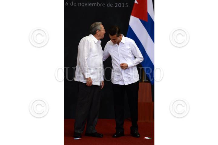MÉRIDA, YUCATÁN, 06NOVIEMBRE2015.- Raúl Castro, presidente de Cuba y Enrique Peña Nieto, presidente de México durante la ceremonia oficial durante la visita de Estado del presidente caribeño. FOTO: ADOLFO VLADIMIR /CUARTOSCURO.COM