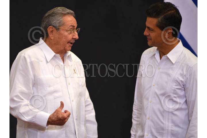 MÉRIDA, YUCATÁN, 06NOVIEMBRE2015.- Raúl Castro, presidente de Cuba y Enrique Peña Nieto, presidente de México durante la ceremonia oficial durante la visita de Estado del presidente caribeño. FOTO: ADOLFO VLADIMIR /CUARTOSCURO.COM
