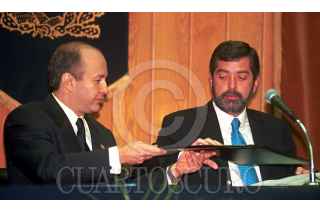 Benjamín González Roaro y el rector Juan Ramón de la Fuente, firmaron un convenio de cooperación entre el ISSTE y la UNAM. FOTO: Pedro Mera/CUARTOSCURO.COM