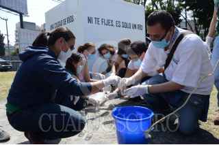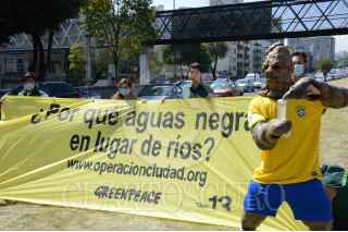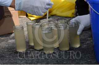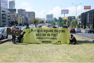 MÉXICO, D.F., 07NOVIEMBRE2015.- La ONG Greenpeace en colaboración con Taller 13, despacho enfocado en el diseño y arquitectura ambientalista, realizaron el día de hoy su última recolección de muestras de agua procedentes de los diversos ríos entubados de la ciudad, la acción se realizo sobre el camellón de Viaducto y el cruce con la avenida Insurgentes. El “supercívico” Arturo Hernández, personificado como “Kaká”, estuvo presente. FOTO: GALO CAÑAS /CUARTOSCURO.COM