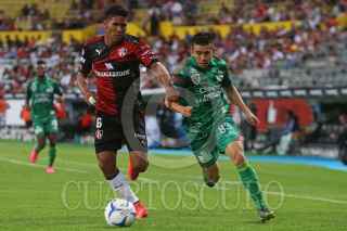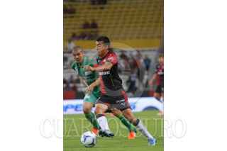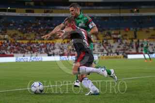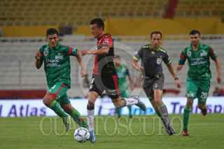 GUADALAJARA, JALISCO. 07NOVIEMBRE2015.- El jugador del Atlas Felipe Baloy, disputa un balón frente al contrario de Jaguares Avilés Hurtado, esto en partido correspondiente a la Jornada 15 del Torneo Apertura 2015 de la Liga MX, en donde se enfrentaron los equipos de los Zorros del Atlas frente a Jaguares de Chiapas, en partido que se juega en el Estadio Jalisco y en donde el marcador final fue 3-2 a favor del equipo visitante. FOTO: FERNANDO CARRANZA GARCIA / CUARTOSCURO.COM