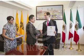 MÉXICO, D.F., 09NOVIEMBRE2015.- En la sede nacional del Partido de la Revolución Democrática, se llevó acabo el acto de entrega-recepción por parte de Carlos Navarrete Ruíz y Agustín Basave Benítez, Presidente Nacional de este instituto político electo el pasado sábado por el Consejo Nacional. La Secretaria de Finanzas, Rosario Rosales leyó las partes sustanciales del acta a la que posteriormente ambos líderes procedieron a firmar. FOTO: PRD /CUARTOSCURO.COM