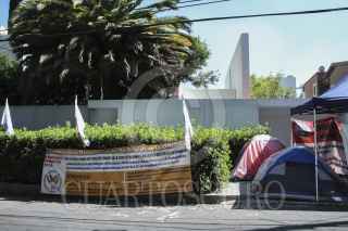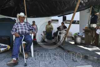 MÉXICO, D.F., 09NOVIEMBRE2015.- La Coordinadora Binacional de Exbraceros mantienen un plantón en las inmediaciones de la llamada Casa Blanca perteneciente a Angélica Rivera esposa del hoy presidente de México Enrique Peña Nieto. Los manifestantes exigen se pague la deuda que el país tiene con los braceros mexicanos y la integración de la Comisión especial de exbraceros en la cámara de diputados. FOTO: ISABEL MATEOS /CUARTOSCURO.COM