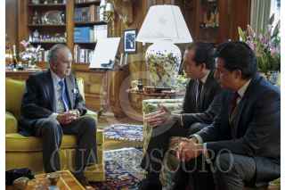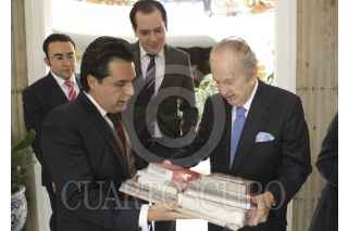 MÉXICO, D.F., 09NOVIEMBRE2015.- Los senadores Roberto Albores Gleason y Zoé Robledo Aburto acudieron al domicilio de Alberto Baillères González, para notificarle que será galardonado con la Medalla de Honor Belisario Domínguez, como un reconocimiento del Senado de la República a su sobresaliente contribución como mexicano. FOTO: SENADO /CUARTOSCUR.COM