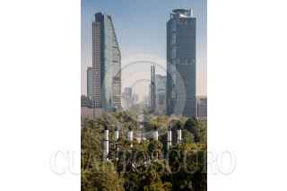 MEXICO, D.F., 10NOVIEMBRE2015.- Vista de la avenida Paseo de la Reforma desde el alcázar del Castillo de Chapultepec. Se aprecian las torres más altas de la ciudad, La Torre Mayor y la Torre Bancomer. FOTO: DIEGO SIMÓN SÁNCHEZ /CUARTOSCURO.COM