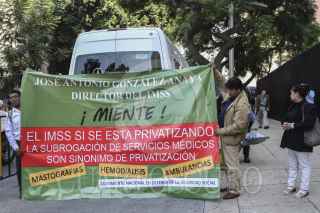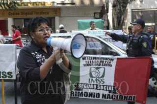 MÉXICO, D.F., 11NOVIEMBRE2015.- Trabajadores activos y jubilados del IMSS protestaron afuera del Senado, mientras acontencía la comparecencia de José Antonio González Anaya, director del Instituto Mexicano del Seguro Social (IMSS). FOTO: MARÍA JOSÉ MARTÍNEZ /CUARTOSCURO.COM
