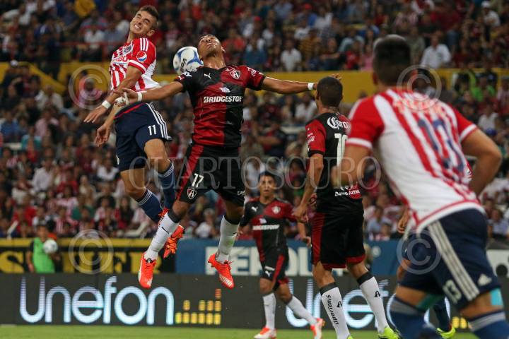 GUADALAJARA, JALISCO. 11NOVIEMBRE2015.- El jugador de Chivas Ángel Zaldívar, disputa un balón frente al guardameta de Atlas Miguel Fraga y el defensor Carlos Arreola, esto en partido correspondiente a la Jornada 14 del Torneo Apertura 2015 de la Liga MX, en donde se enfrentaron los equipos de los Zorros del Atlas frente a las Chivas de Guadalajara, el marcador final fue de 1-0 a favor del equipo visitante en partido que se jugo en el Estadio Jalisco. FOTO: FERNANDO CARRANZA GARCIA / CUARTOSCURO.COM